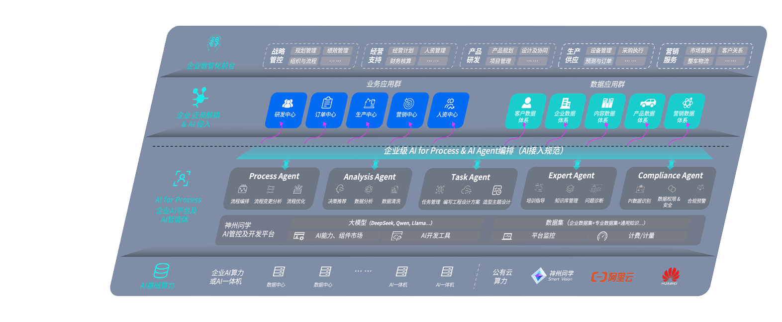 亿万28问学智车解决方案是一套基于AI技术的汽车行业智能化系统,,,覆盖从底层算力到顶层AI应用的全栈方案。。。。方案由算力层、、、、模型层和应用层组成:算力层,,,,方案支持多种一体机配置,,,具备云端灵活部署、、、、多云适配以及动态优化计算资源的能力;模型层,,,亿万28问学平台版提供了企业级AI应用一站式构建与管理平台,,,支持基于后训练强化技术的汽车企业专属模型的训练、、、、评测和运营;应用层,,,,亿万28问学DeepSeek版提供包括超级员工、、智能招采、、、智能营销、、、智能客服、、、AI for BI等一系列解决方案,,,可助力汽车行业实现数字化转型,,,让管理更智能、、、、响应更敏捷。。。。
